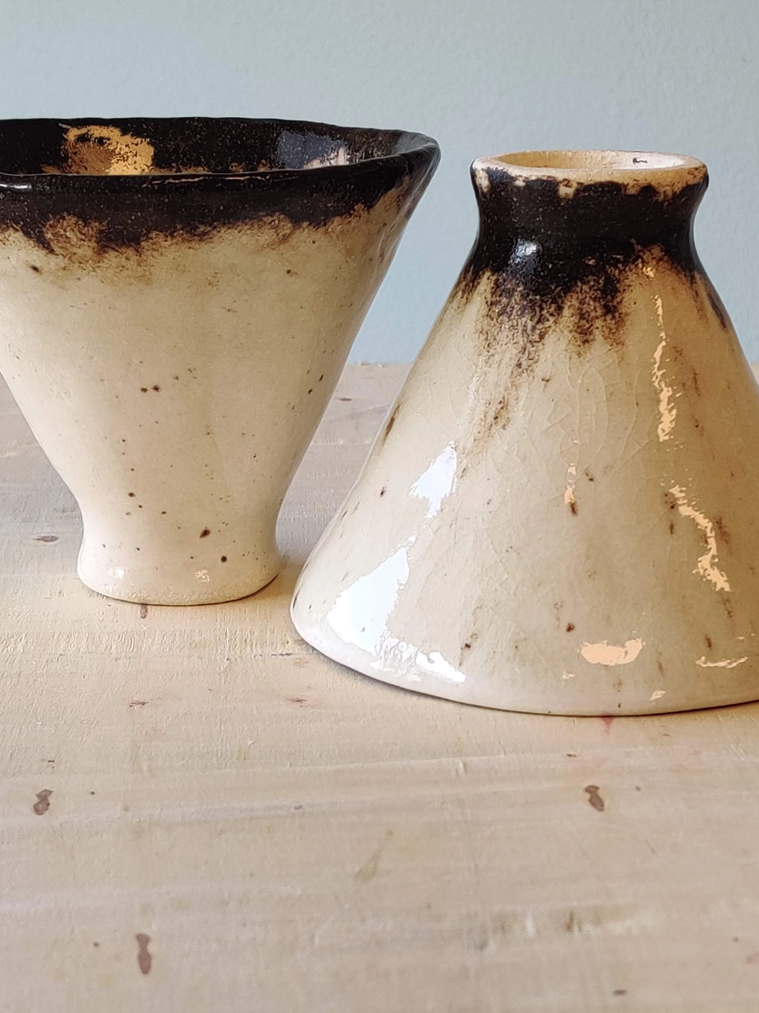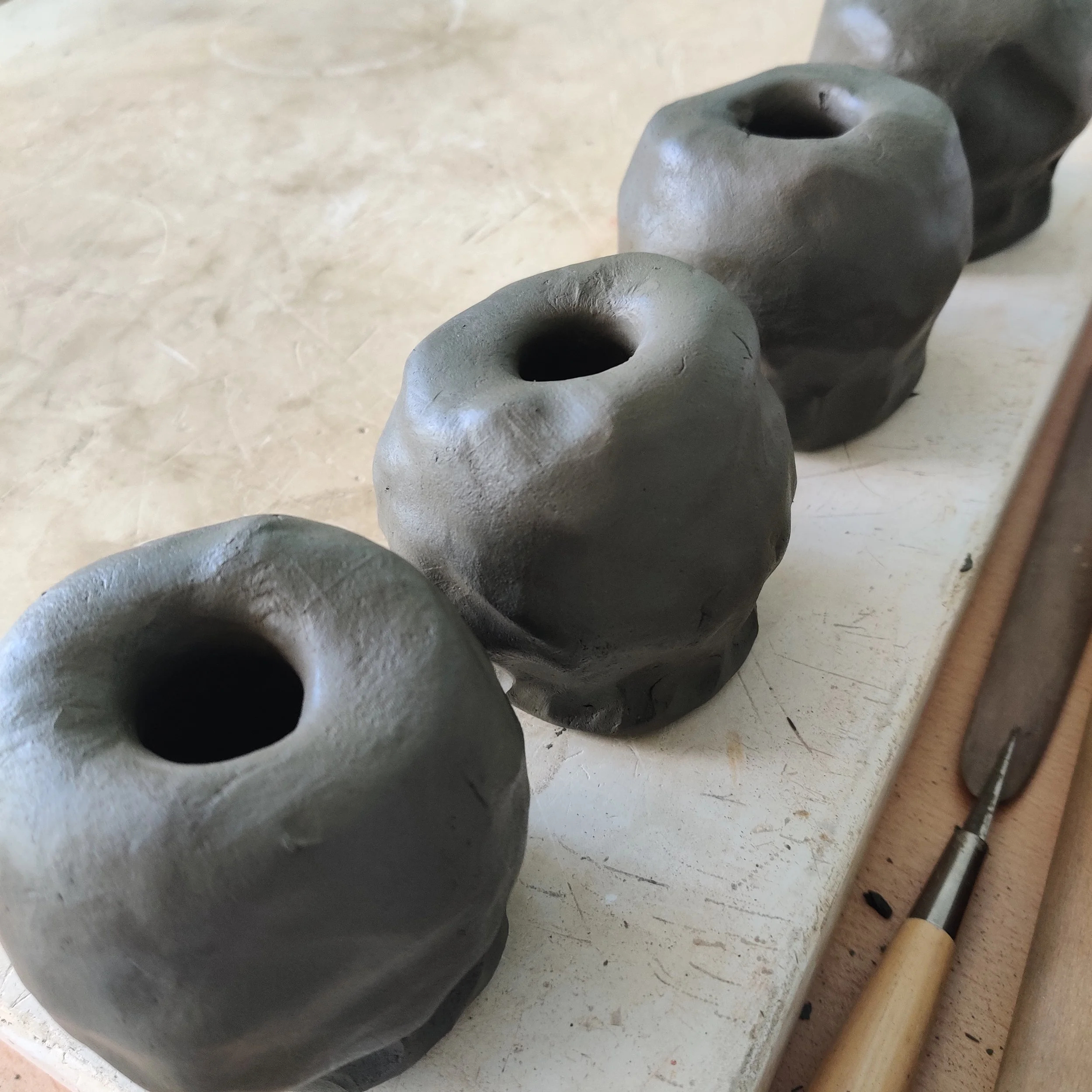 Ceramic objects shaped by material instinct — hand-built and wheel-thrown, in stoneware, earthenware
